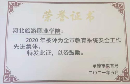 近日,我校被承德市教育局评为“2020年承德市教育系统安全工作先进集体”。