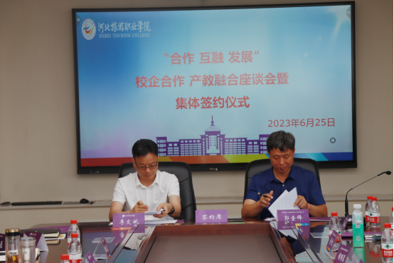 为推动京津冀协同发展,进一步加强校企联络,促进校企共赢,共谋高质量发展,我校于6月25日成功举办了以“合作 互融 发展”为主题的百家企业进校园系列活动。上午10点在行政楼501会议室,学校与北京好利来&黑天鹅食品有限公司、北京亮马河大厦有限公司、北京海湾半山酒店管理有限公司、北京朝林科技发展集团有限公司、北京谷新投资管理有限公司、北京静之湖度假酒店有限公司、河北大北农农牧食品有限公司、雄安国际酒店、唐山市澳华生物科技有限公司、文商旅文化发展(河北)集团有限公司、承德市避暑山庄旅游集团、河北山庄老酒股份有限公司、承德顺天宫坊食品有限公司、承德金鼎源彩色印刷有限公司、河北滕氏布糊画科技有限公司、承德市艺风园林绿化工程有限公司等16家合作单位代表成功举行校企合作、产教融合座谈会暨集体签约仪式。校长李文斌,副校长温守东,党委委员、副校长陆翠华,党委委员、教务处处长刘占明出席活动。校企融合发展中心主任王剑、副主任孙鹏,酒店管理学院党总支书记沈博,文化旅游学院院长田莹,畜牧兽医学院院长闫港,现代商务学院院长张成龙,艺术设计学院院长魏群,信息与智能工程学院院长刘玮,现代农业与园林学院副院长崔海明和各二级学院就业工作负责人参加座谈及签约仪式。会议由党委委员、副校长陆翠华主持。