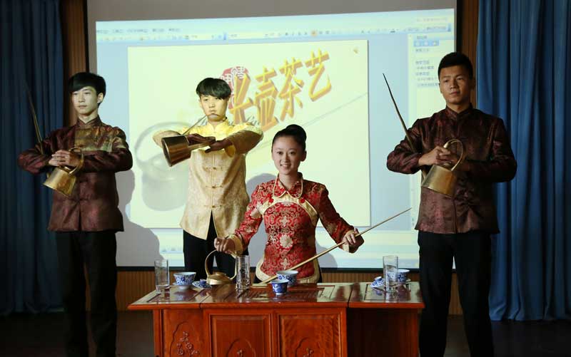 下午,应代表团的邀请,我院杨湧老师又带领8名学生到承德市红岁书院与茶文化代表团进行了茶艺交流活动。茶企业老总们纷纷对学生递出了就业的邀请函,舒曼会长还表示将会进一步与我院进行沟通交流,依托我院建立一支河北茶文化表演团,在全国打造河北乃至承德的茶文化内涵,让河北旅游学院的学生通过河北茶文化学会这个平台走出学院,走出河北,走向全国乃至世界。(旅游管理系供稿)