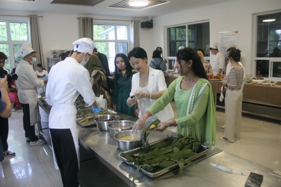 为促进我校与承德医学院两校之间的沟通交流,丰富在承德学习的海外来华留学生的业余文化生活,增进海外来华留学生对承德的了解和热爱,展现“承德魅力”,2023年6月21日,学校携手承德医学院在我校举办中外师生共享浓情端午活动。学校副校长温守东,党委委员、宣传部(工会)部长(主席)王慧贤,国际交流合作中心主任吴翠华,承德医学院国际教育学院院长佟晓波、副院长王会玲及两校中外师生共同参加了此次活动。