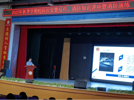 学校邀请驻地公安干警针对校园治安、反诈骗开展讲座。高新技术产业开发区桃李派出所民警围绕校园常见的电信网络诈骗、财产安全、人身安全等问题展开详细讲解,通过真实案例复盘诈骗分子的作案手法,讲解了常见的电信网络诈骗形式,深入剖析被骗原因,普及法律知识和防范要点。同时结合同学们日常生活中常见的财产安全风险点,提醒同学们增强安全意识,养成财物妥善保管的好习惯,增强对潜在风险的警惕性。活动现场,民警还向新生发放安全教育宣传资料,倡议大家维护校园秩序,遵守交通规则,文明出行。