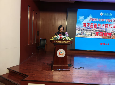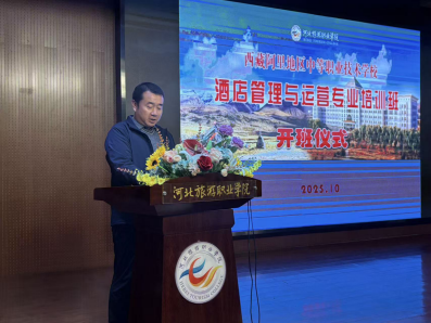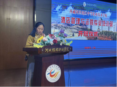 10月14日,西藏阿里地区旅游从业人员技能培训项目开班仪式在我校学术报告厅举行。河北省红色旅游协会常务副会长兼秘书长徐平海,承德市旅游与文化广电局二级调研员甘彦秋,西藏阿里地区文化和旅游局副局长王慧军,我校副校长温守东,酒店管理学院党总支书记沈博、院长马磊,继续教育与培训部部长焦瑞民,教师、学生代表以及西藏阿里地区中等职业技术学校21名师生出席开班仪式。开班仪式由马磊主持。