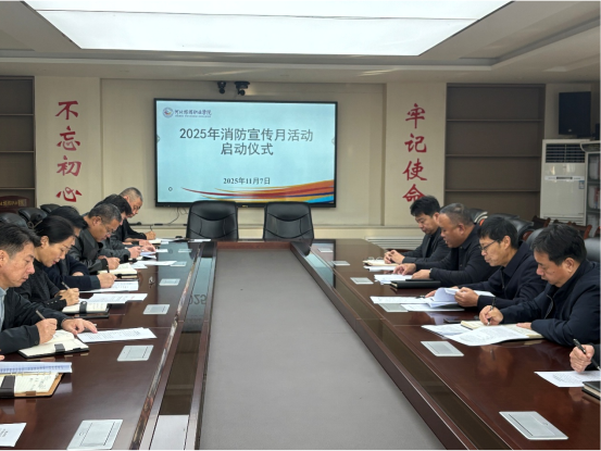2025年11月7日,学校在行政楼501会议室,组织召开2025年消防宣传月活动启动仪式会议。学生工作部(团委)、教务处、后勤处、网络安全与信息化中心、安全工作处(武装部)等相关部门和二级学院主要负责同志参加会议。党委委员、副校长纪正红出席会议并讲话。安全工作处(武装部)处长(部长)蒋文东主持会议。