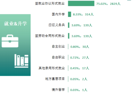 重点群体就业显效,民生关怀落到实处。困难毕业生毕业去向落实率连续五年超过学校平均值,近五年累计为1323名贫困毕业生申请上级补贴,累计为228名毕业生发放校级求职补贴。