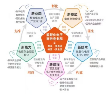学院立足电子商务全链路中商流、信息流、物流、资金流“四流贯通”的产业特征,系统构建电子商务专业群。以产业需求为起点,创新形成行业、企业、职业、专业、创业“五业联动”的专业群建设与发展模式;依托平台、项目、标准、教师、文化“五维融合”机制,系统构建数智电商产教融合新生态。与京东物流教育共建数字商业产业学院,探索形成“学校+京东+区域内企业集群”(1+1+N)的“共管、共建、共育”产业学院新模式。携手中国人民银行承德市分行等单位,共同打造“承德市反洗钱宣传教育基地”,开创校行协同、文化育人新格局。电子商务专业群成功立项为省域高水平专业群;相关案例入选教育部全国产教融合校企合作典型案例,获评全国“提升学校办学能力,提高服务发展支撑力”典型案例二等奖;荣获省级教学成果二等奖1项、三等奖1项。
