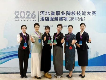 近日,由河北省教育厅主办,河北省酒店职教集团、石家庄财经职业学院承办的2026年河北省职业院校技能大赛圆满落幕。在“酒店服务”赛项中,张思浓、陈曦、陈姝羽、陈嘉祺四位同学组成的参赛团队荣获二等奖;在“酒水服务”赛项中,陈曦、韩旭两位同学组成的参赛团队同样荣获二等奖。