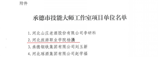 匠心传茶韵,技艺育新人。近日,承德市人力资源和社会保障局、承德市财政局联合公布市级技能大师工作室建设名单。文化旅游学院杨湧牵头建设的茶艺技能大师工作室成功入选,标志着我校在茶文化传承、高技能茶艺人才培养与产教融合平台建设上再获认可。