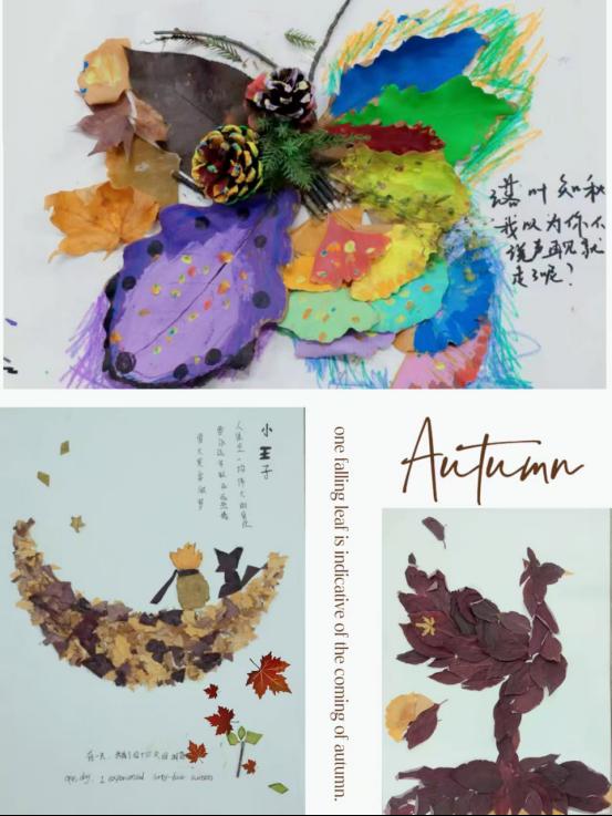同学们走进校园的角落,俯身拾起形态各异、色彩斑斓的落叶,通过剪裁、拼贴、勾勒、上色,进行全新艺术创作。指尖流转间,是对形态的斟酌;构图取舍间,是对美感的把握。一片片平凡的落叶,在同学们的巧思与匠心之下,被赋予了新的生命与情感。作品中有对自然的礼赞,有对生活的热爱,也有对时代的呼应。