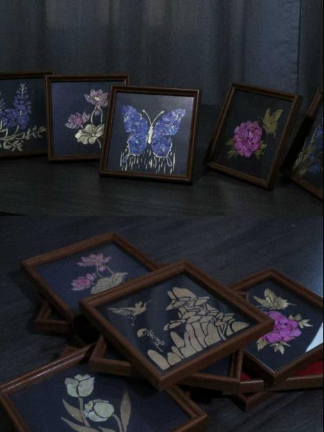 螺钿嵌彩·金箔生辉——非遗螺钿金箔画。活动聚焦螺钿金箔画技艺,同学们学习如何将螺钿片细心拼贴、打磨,再以金箔点缀画面,营造出流光溢彩的视觉效果。活动不仅锻炼了同学们的耐心与专注,更让古老技艺在当代设计中焕发新的生机。