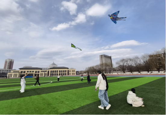 大家相互配合,仔细检查风筝结构、整理放飞线,操场上顿时充满了欢声笑语。大家借助和煦的春风,小心翼翼地将风筝送上蓝天。看着一只只承载着心愿的纸鸢在蓝天中翱翔,同学们的脸上洋溢着喜悦与自豪。